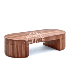 Meja Tamu Oval Kayu Jati Garis Vertikal Minimalis Mewah