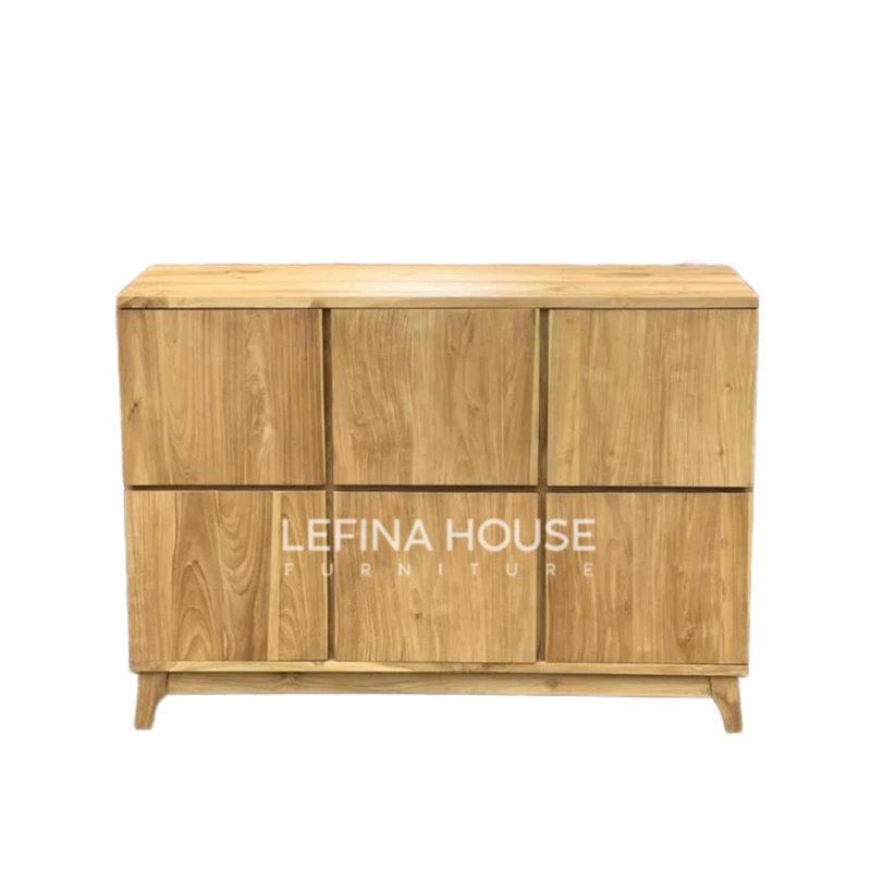 Sebagai bagian dari koleksi Lefina House, bufet ini merupakan hasil karya pengrajin profesional dari Jepara, menggunakan legal wood yang ramah lingkungan dan tahan lama. Setiap detail dikerjakan dengan presisi, dari sambungan kayu, engsel pintu, hingga sentuhan akhir yang halus.