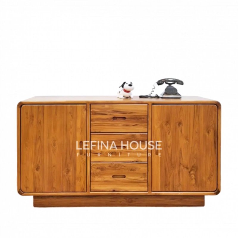 Sebagai bagian dari koleksi Lefina House, bufet ini diproduksi langsung oleh pengrajin profesional Jepara dengan material legal wood yang terjamin kualitas dan keberlanjutannya. Setiap detail dikerjakan secara presisi untuk menjamin kekokohan dan tampilan elegan.