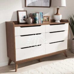 Bufet Modern Minimalis Kombinasi Kayu & Putih merupakan salah satu koleksi unggulan dari Lefina House, toko mebel Jepara terpercaya. Dengan desain mid-century modern, bufet ini menghadirkan kesan retro yang tetap relevan dengan gaya hunian masa kini.