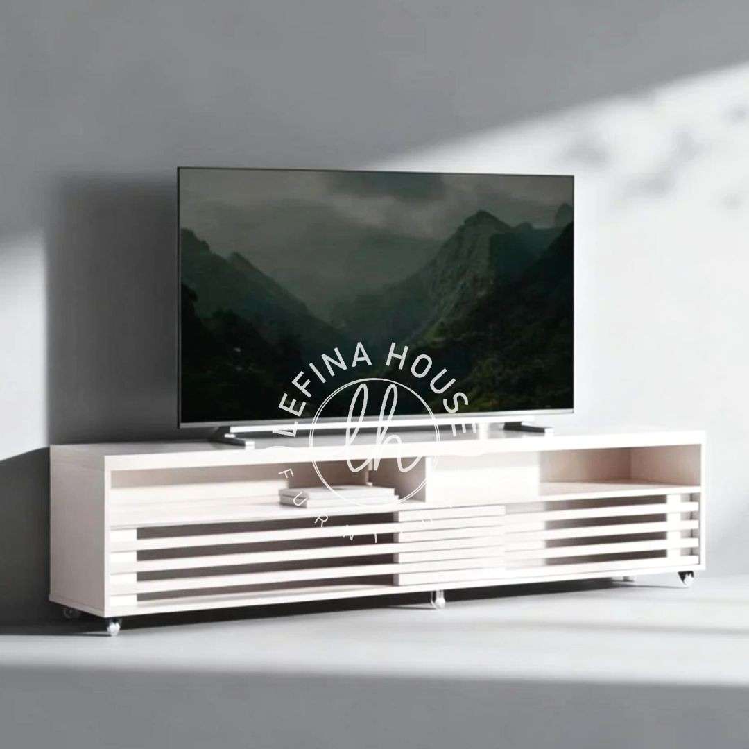 Bufet TV Putih Sirip Horizontal Modern – Simpel dan Stylish