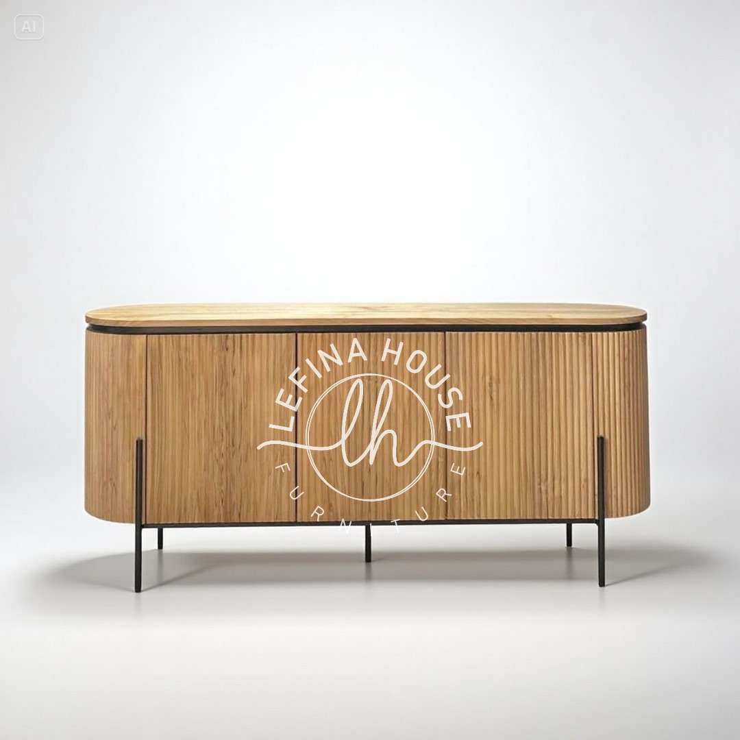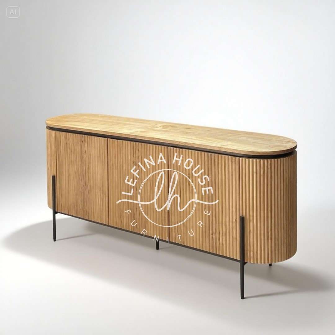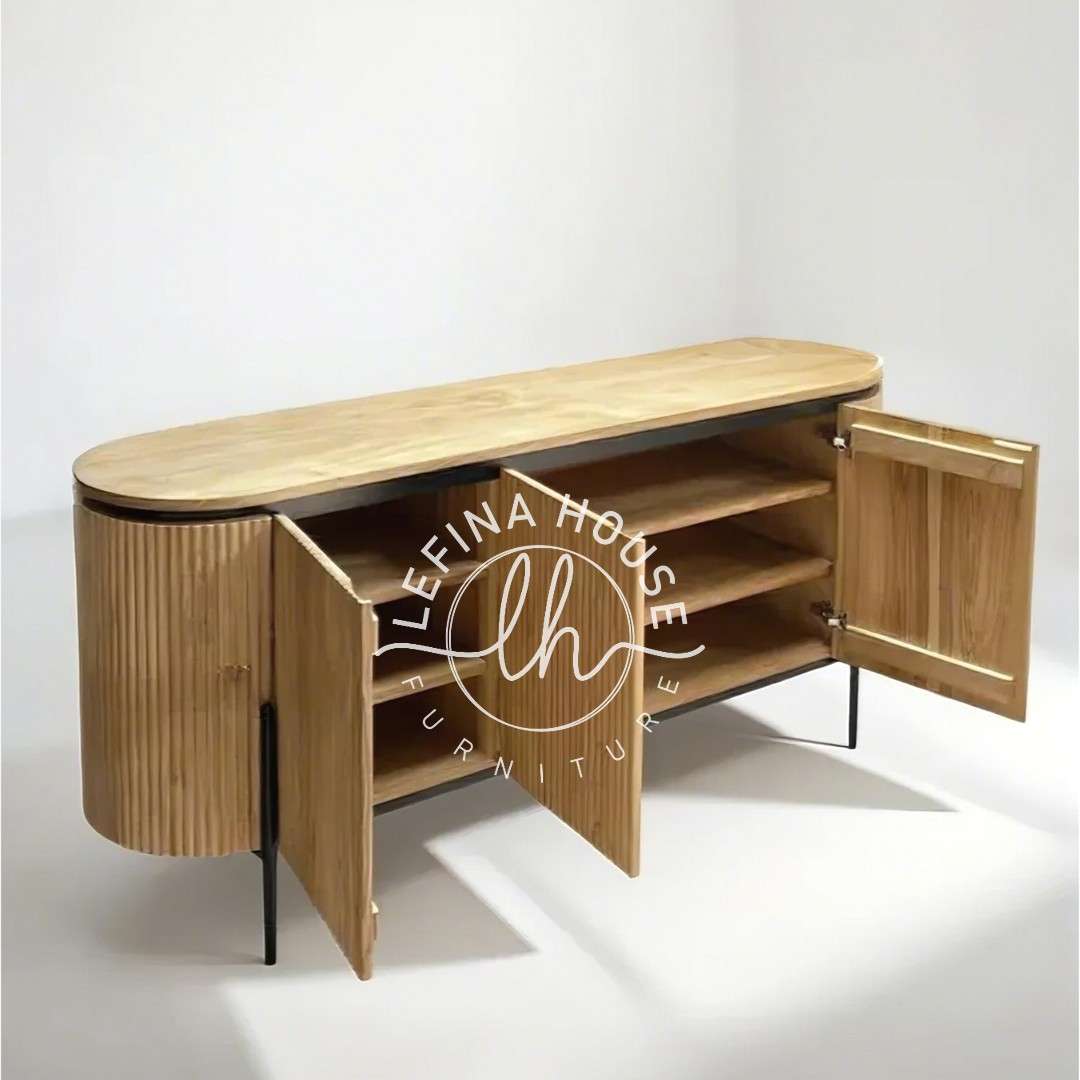 Jadikan ruang Anda lebih elegan dengan credenza kayu natural bundar mewah – perpaduan alami dan modern yang menawan.