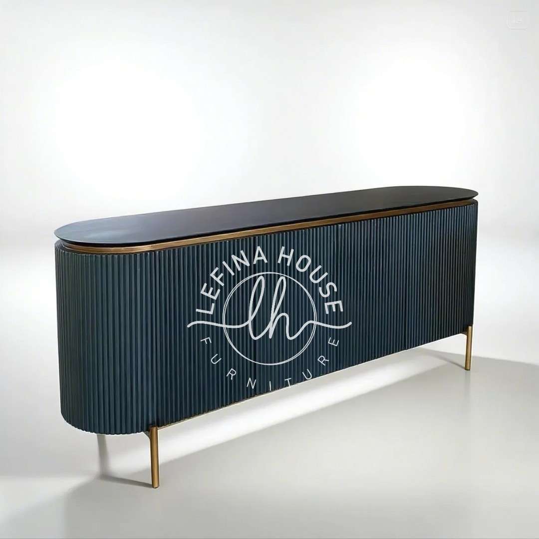 Tambahkan Credenza Mewah Modern Navy Gold ke ruang Anda sekarang dan rasakan sentuhan kemewahan modern dari Lefina House.