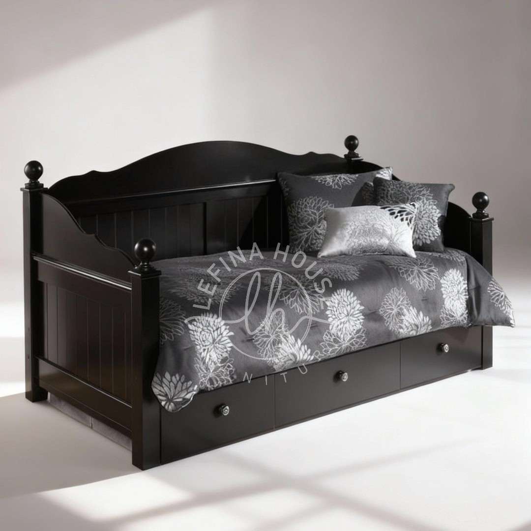 Daybed Kayu Laci Hitam Elegan – Klasik & Fungsional