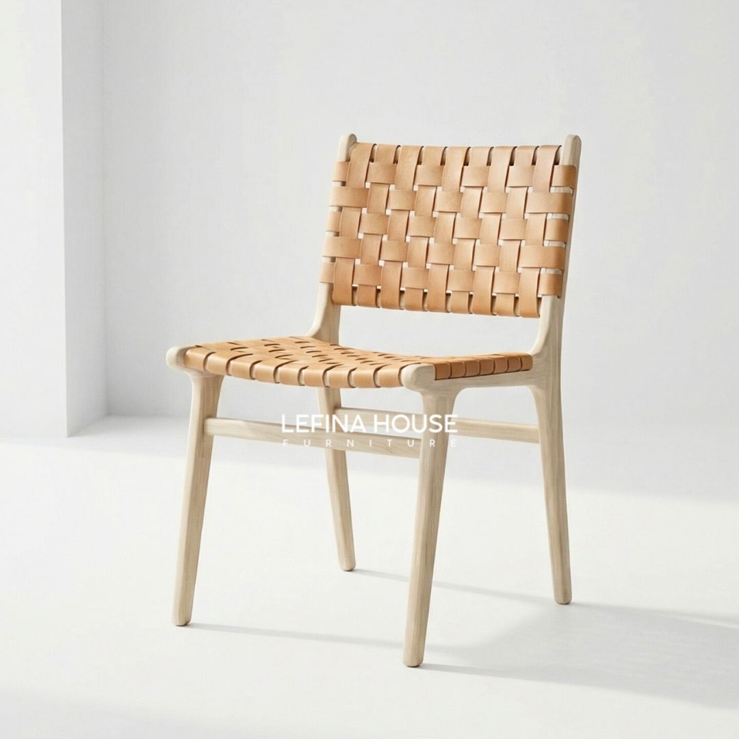 Kursi anyaman rotan desain minimalis natural cocok untuk cafe dan ruang makan.