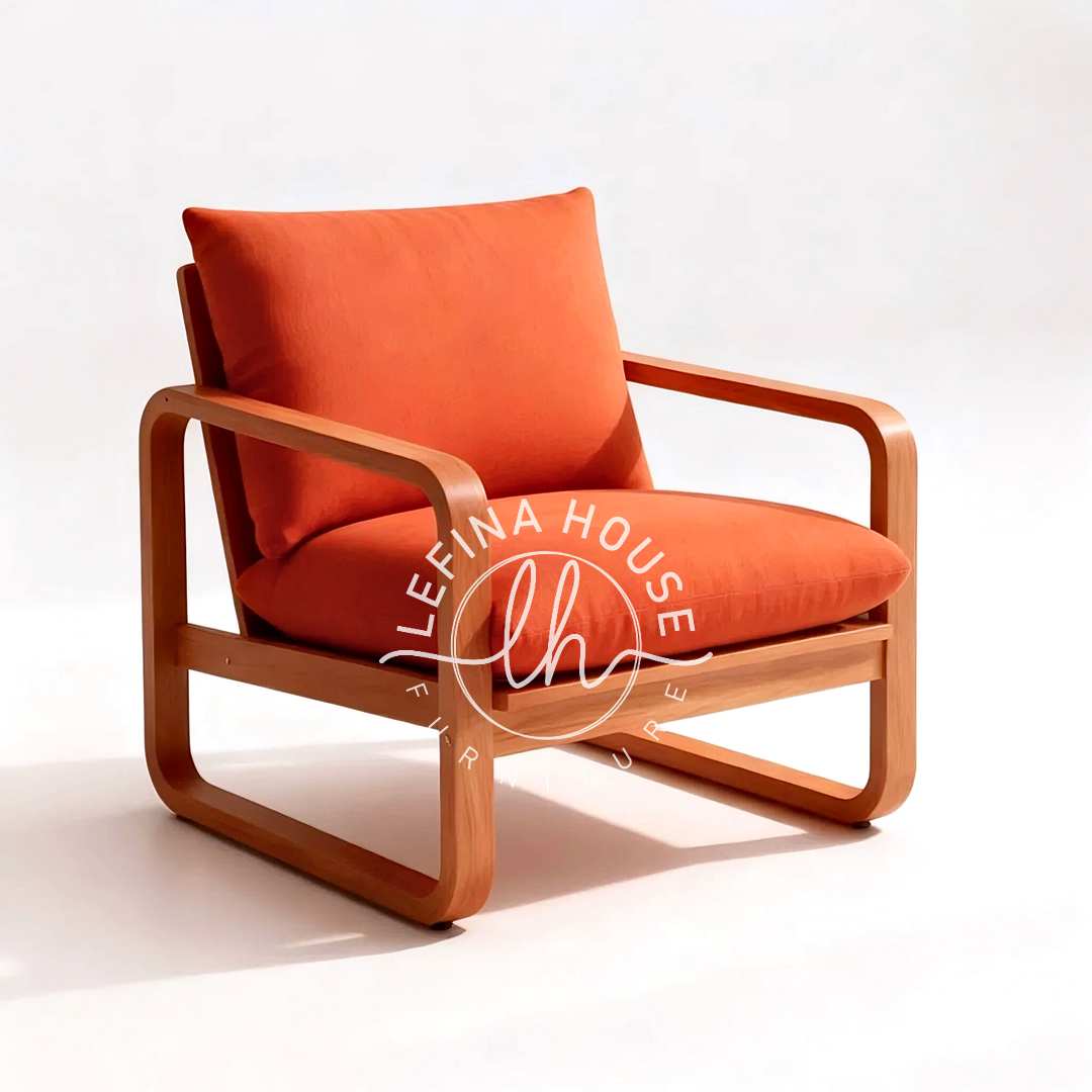 Kursi Jati Minimalis Oranye Cerah Gaya Mid Century