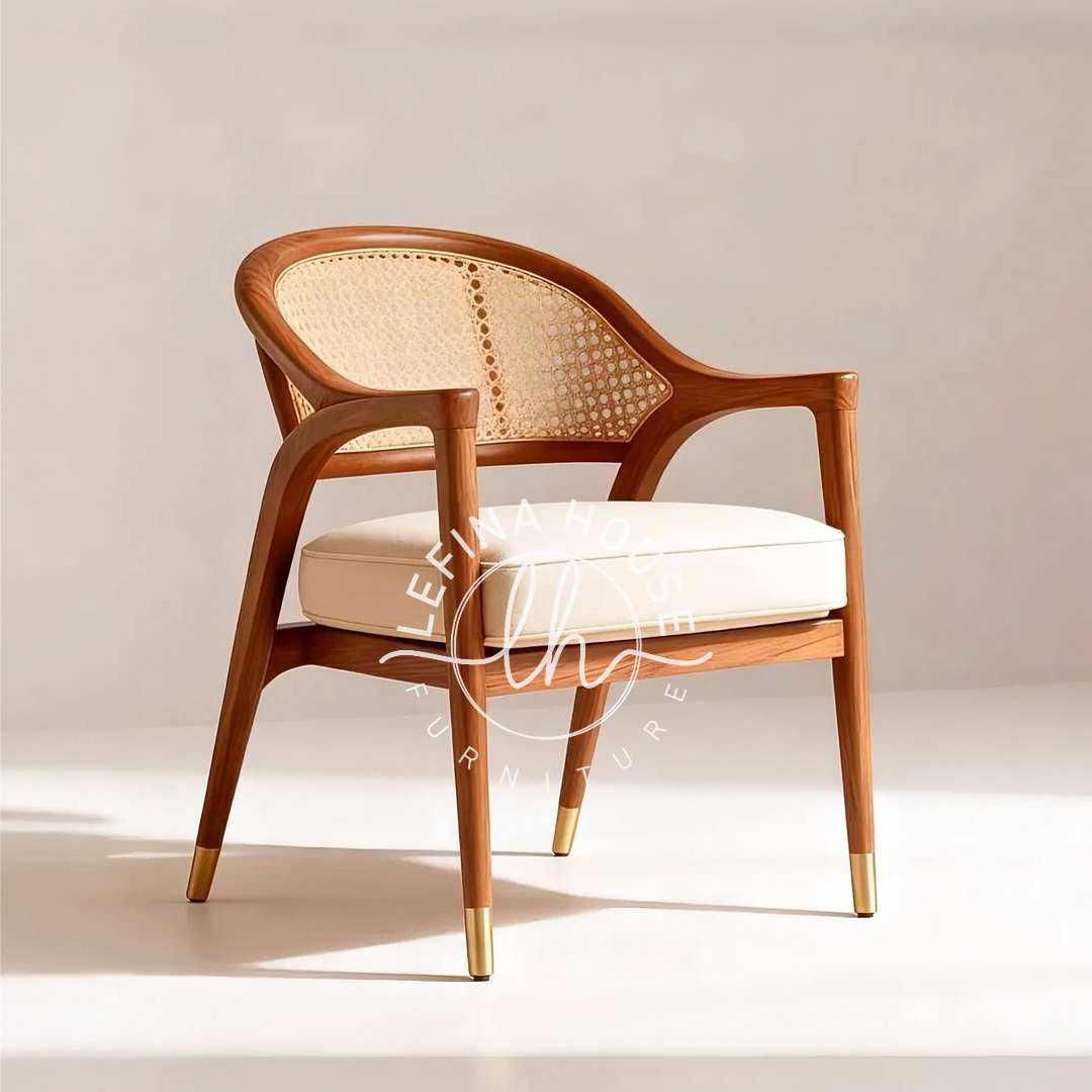 Perpaduan antara kayu jati solid dan anyaman rotan alami menghasilkan tampilan hangat dan elegan pada kursi rotan jati ini. Desainnya yang mengusung gaya Japandi minimalis menghadirkan nuansa bersih, rapi, dan menenangkan, cocok untuk ruang makan, ruang tamu, maupun area santai kafe.