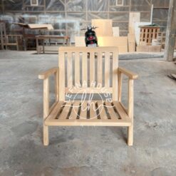 Sebagai bagian dari koleksi kursi teras premium, produk SKU LKSF045 ini memiliki dudukan yang lebar dan rendah, memberikan posisi duduk yang rileks dan ergonomis. Tidak seperti kursi plastik yang mudah rapuh atau kursi besi yang menyerap panas, kursi santai berbahan kayu jati solid ini memiliki suhu yang netral dan nyaman bersentuhan dengan kulit. Struktur serat kayunya yang padat menjadikannya investasi furnitur yang bisa diwariskan antar generasi.