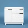 Permukaan atasnya yang luas juga sangat ideal untuk dijadikan meja popok dengan rak dan laci yang terintegrasi.