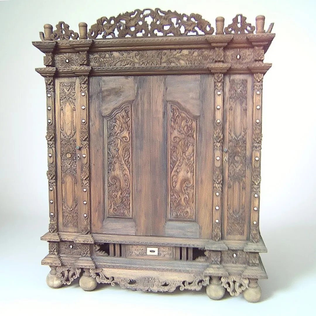Lemari ini tidak hanya berfungsi sebagai tempat penyimpanan, tetapi juga sebagai elemen dekoratif yang memancarkan karakter budaya yang kuat.