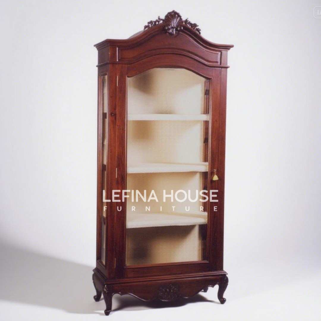 Lengkapi keindahan ruang tamu atau ruang keluarga Anda dengan Lemari Pajangan Jati Klasik Minimalis, hasil karya mebel Jepara yang mengedepankan keindahan alami dan kesederhanaan bentuk.