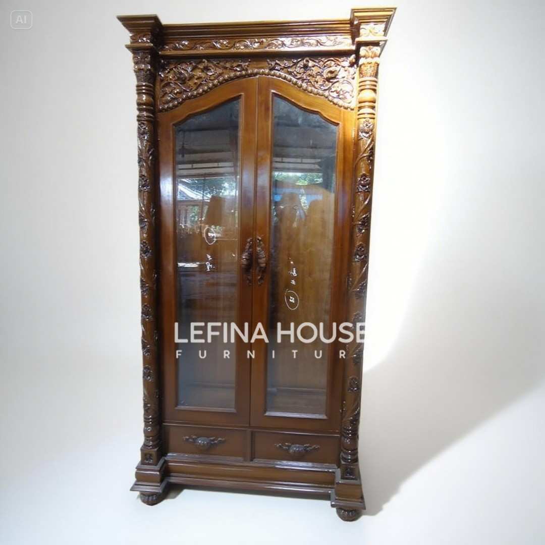 Dilengkapi kaca bening kualitas premium pada pintu dan sisi-sisinya, memudahkan Anda memamerkan koleksi antik, buku, hingga ornamen budaya dalam suasana museum pribadi.