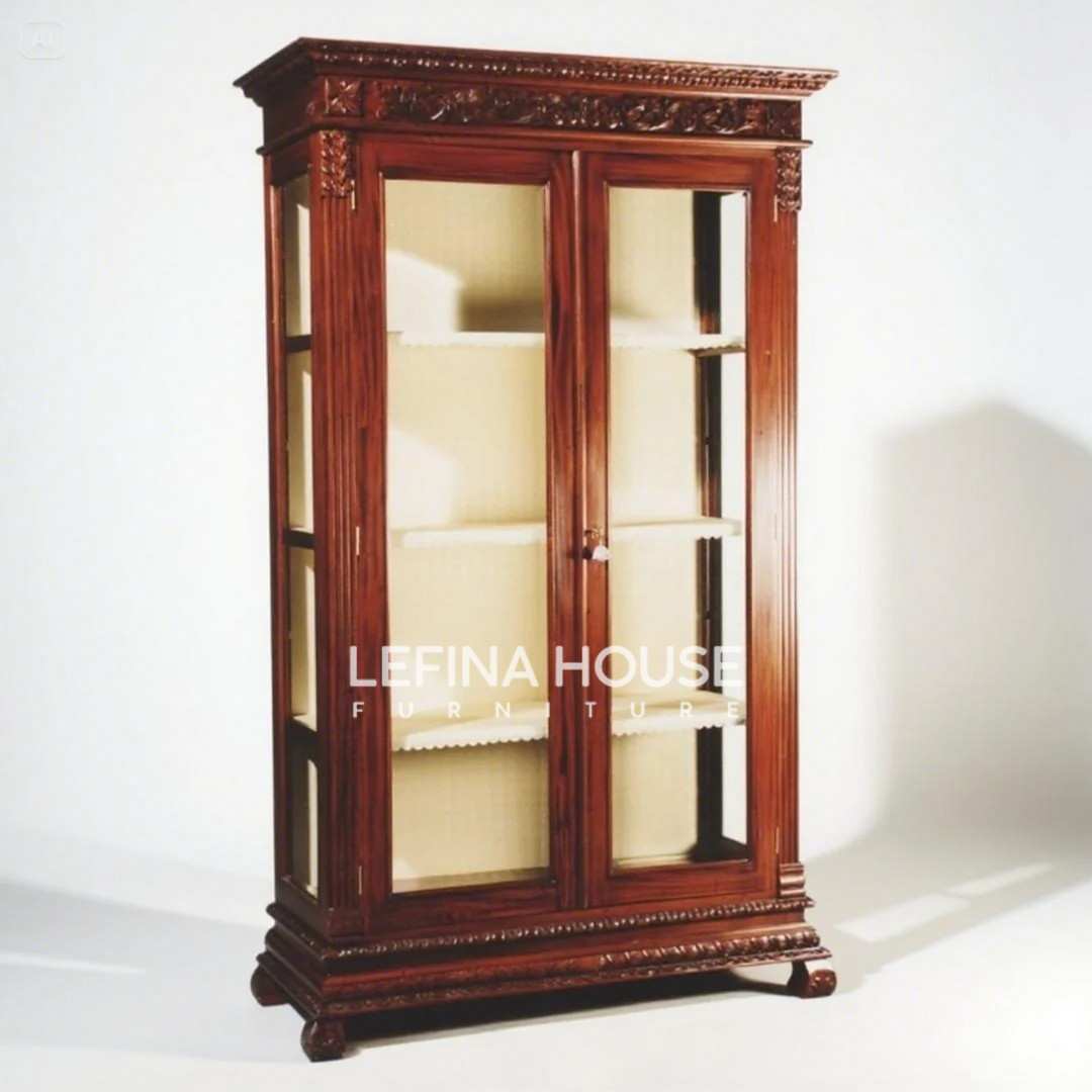 Lemari Pajangan Kaca Kayu Jati Ukir Klasik 2 Pintu