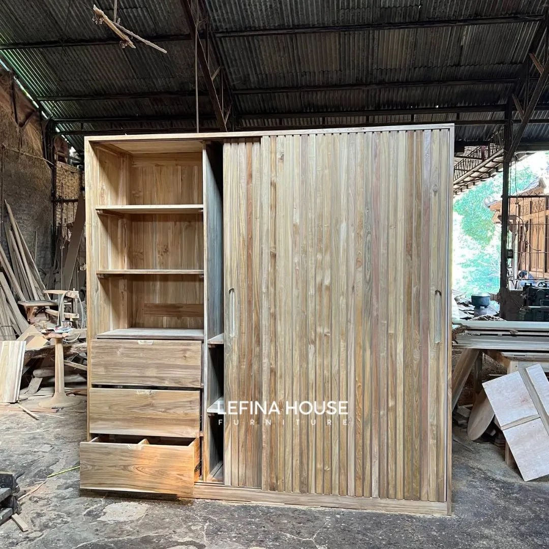 Lemari ini dirancang untuk rumah dan apartemen di Indonesia, khususnya di daerah dengan iklim tropis. Kayu jati terkenal tahan terhadap perubahan suhu dan kelembapan, menjadikan lemari ini investasi jangka panjang.