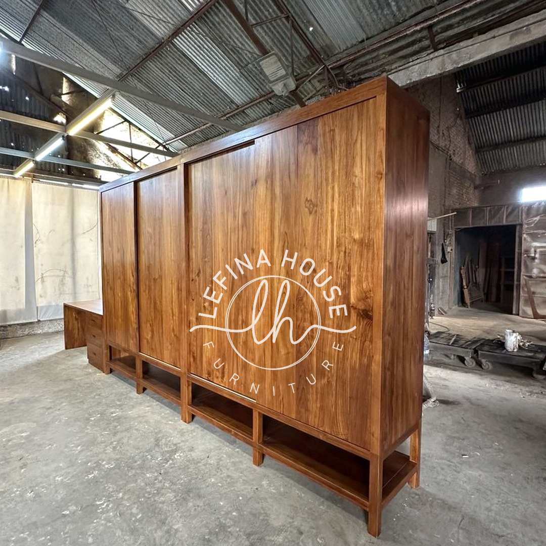 Lemari Pakaian Jati Set Meja Belajar Besar Custom by Lefina House