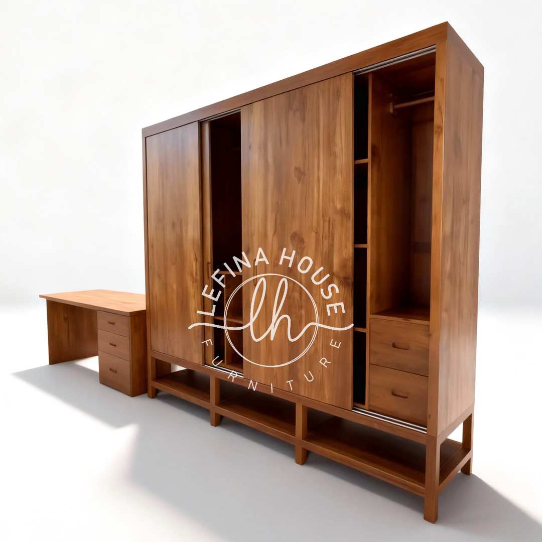 Optimalkan ruang kamar tidur Anda dengan solusi furnitur cerdas: Lemari Pakaian Jati Set Meja Belajar Besar Custom. Produk ini dirancang khusus untuk memenuhi kebutuhan gaya hidup modern yang menuntut efisiensi ruang tanpa mengorbankan estetika. Menggabungkan fungsi penyimpanan pakaian (wardrobe) yang luas dengan area belajar atau kerja yang kondusif dalam satu kesatuan konstruksi yang kokoh. Sangat ideal untuk kamar anak, asrama, atau apartemen studio di mana setiap sentimeter persegi sangat berharga.