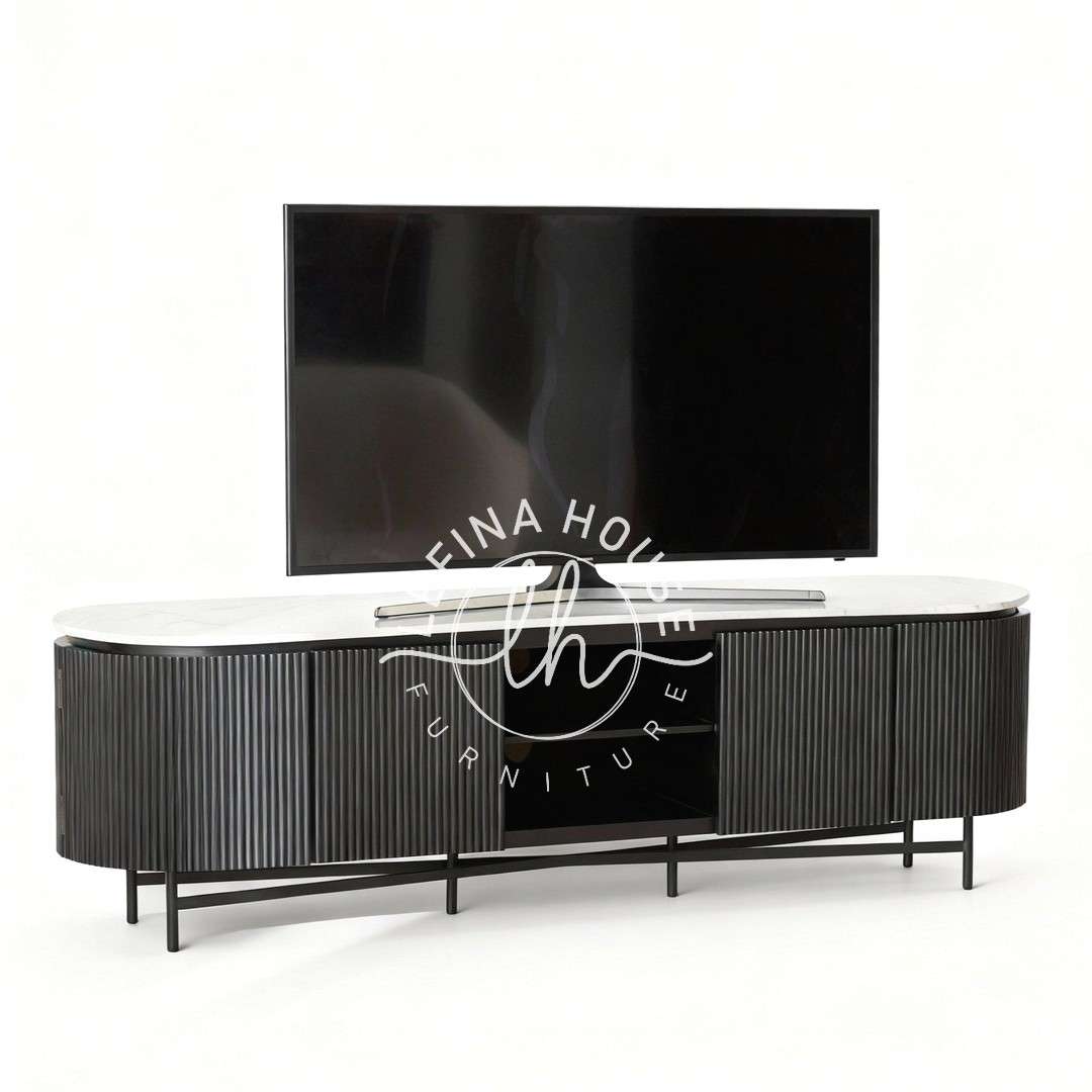 Meja Bufet TV Hitam Modern Oval Minimalis