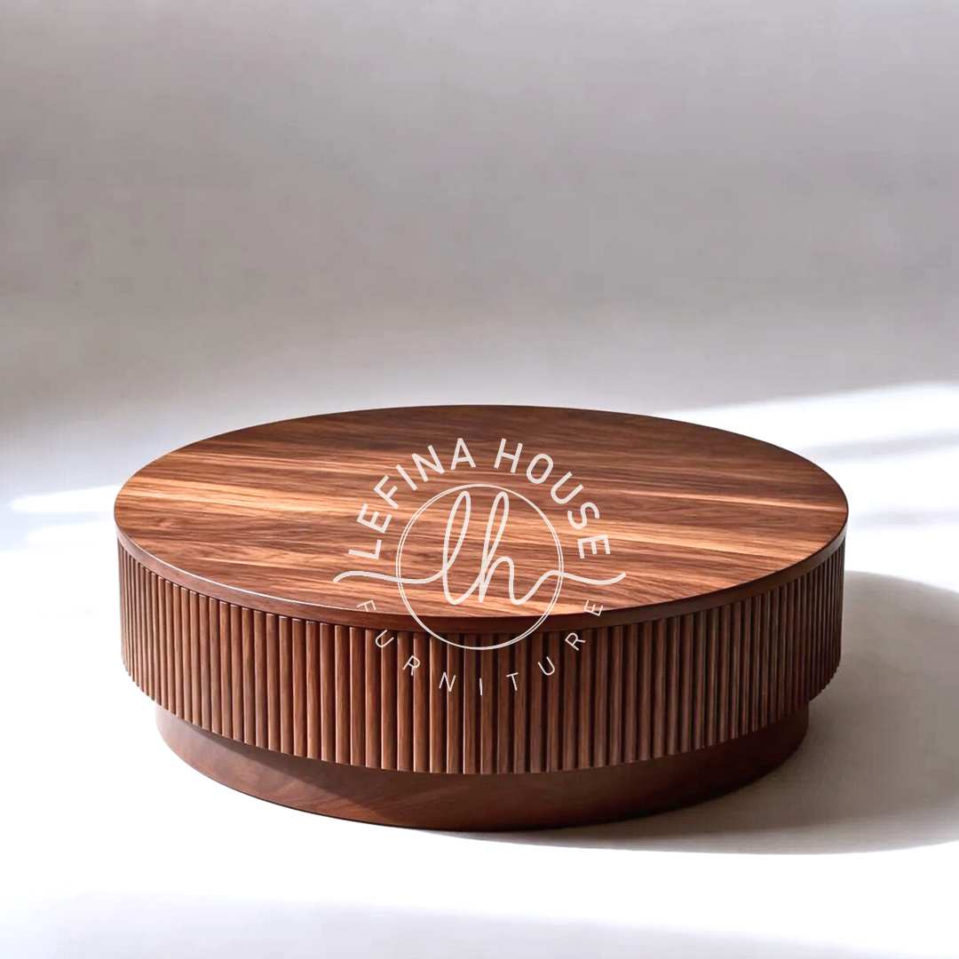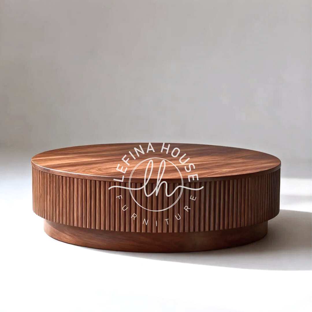 Meja Bundar Kayu Jati: Estetika Kontemporer dengan Garis Vertikal