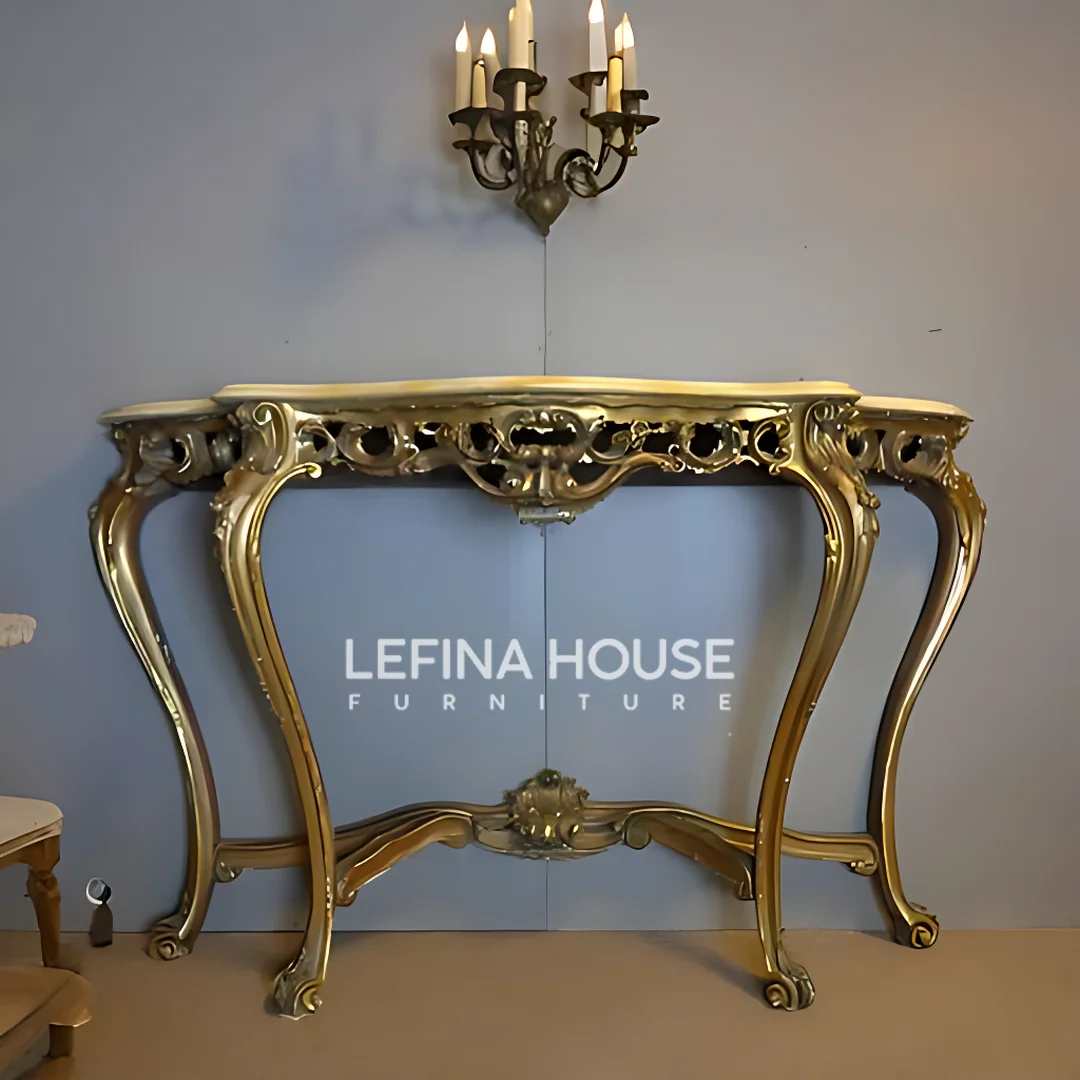 Meja Konsul Gold Ukir Jepara – Elegansi Klasik dalam Satu Sentuhan