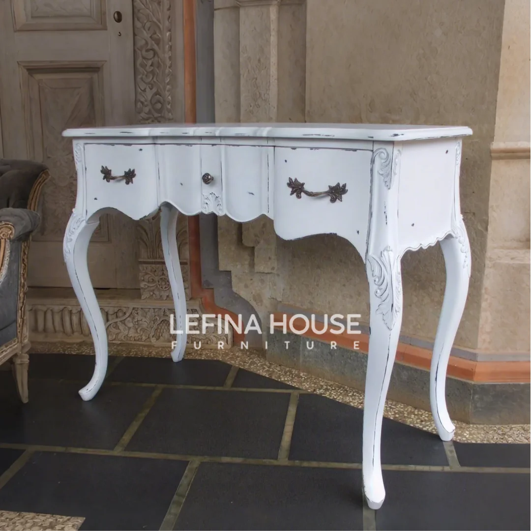 Meja Konsul Jati Duco White Vintage – Elegan, Klasik, dan Serbaguna