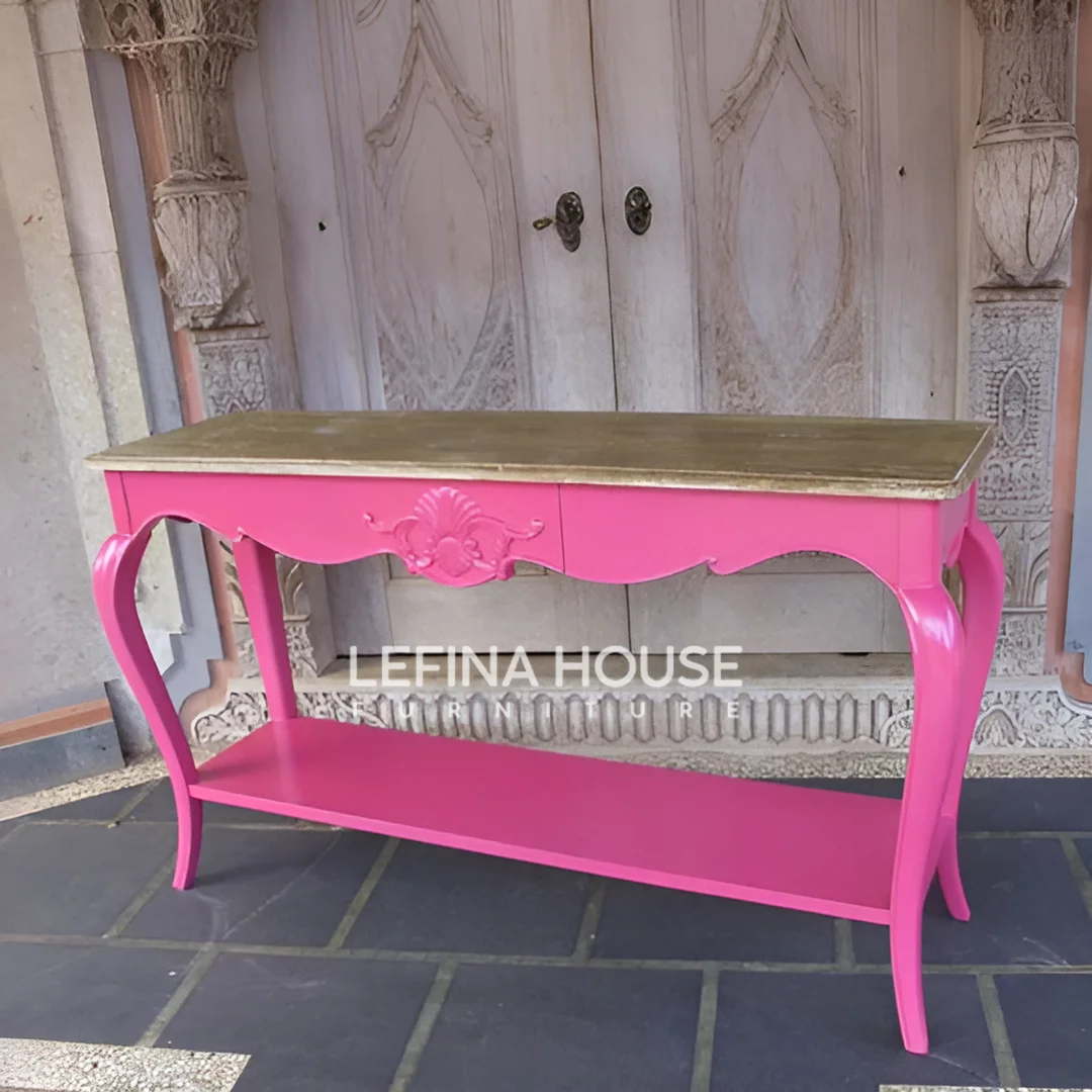 Meja Konsul Jati Jepara Duco Pink – Tampil Unik dengan Warna Feminin