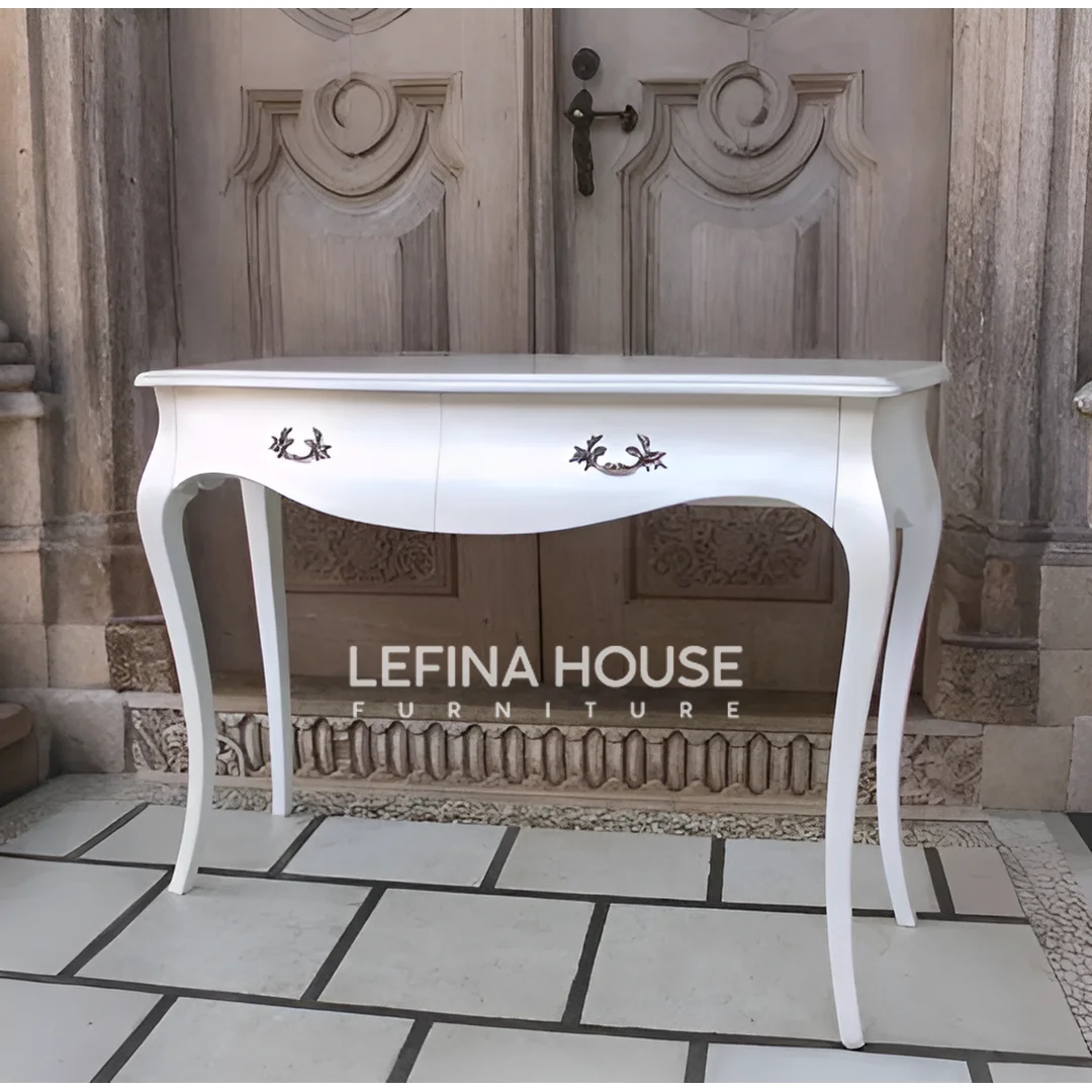 Meja Konsul Kayu Minimalis Cat Duco Putih – Sentuhan Bersih dan Modern