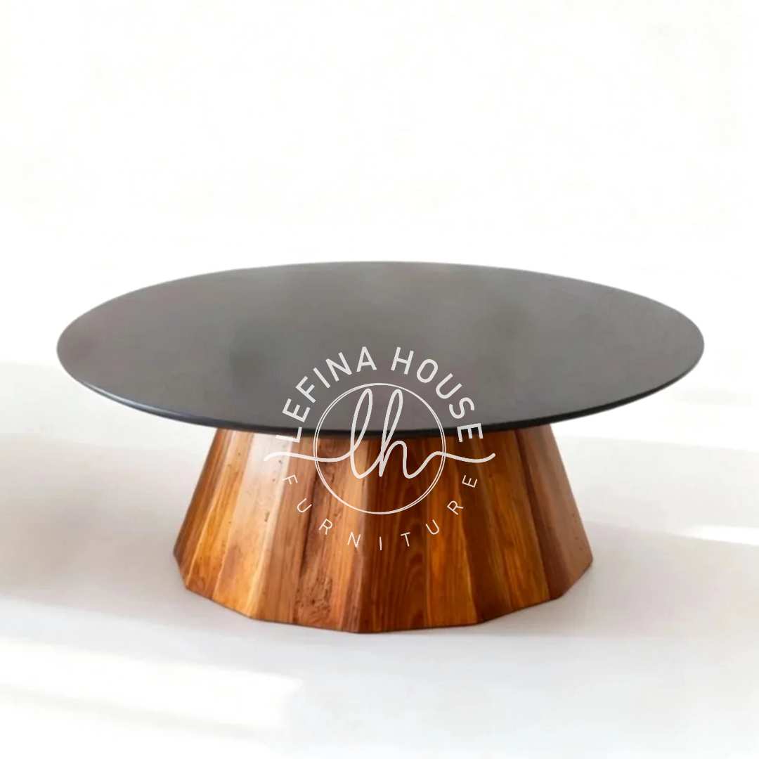 Tampil Stylish dengan Meja Kopi Bundar Kayu Jati Top Hitam Elegan