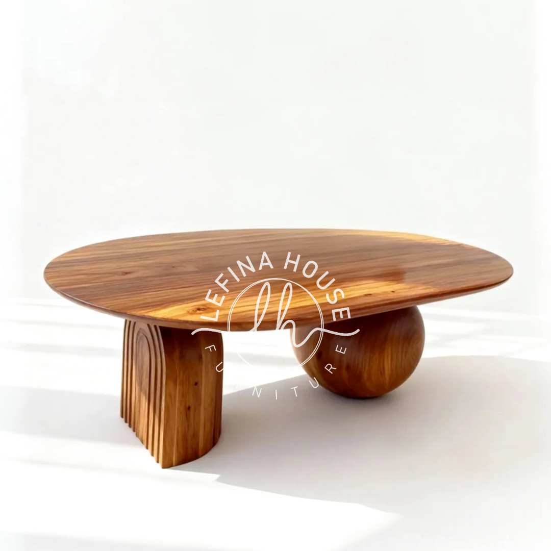 Sebuah Karya Seni Fungsional: Meja Kopi Kayu Bulat Oval Unik
