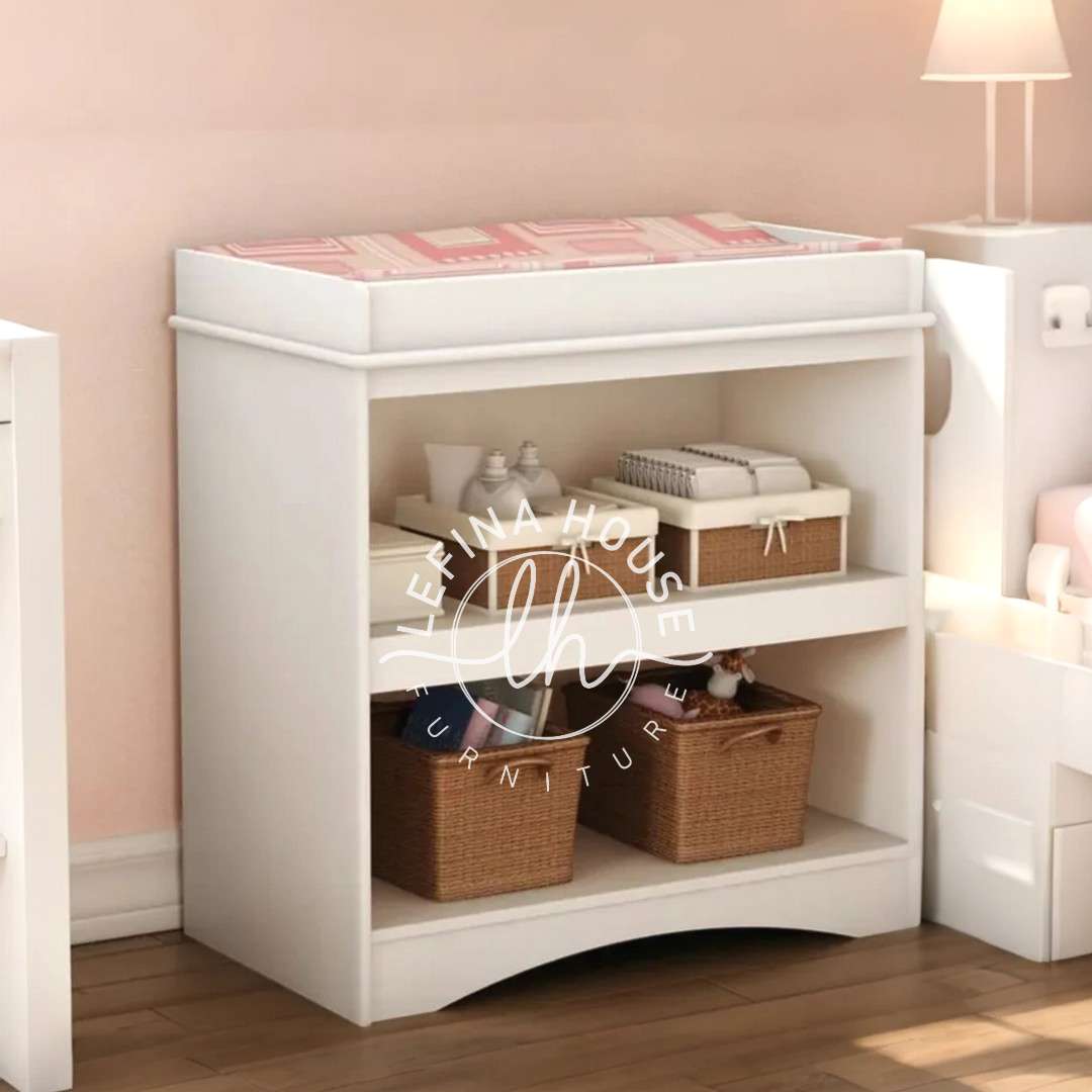 Praktis dan Terbuka: Meja Popok Bayi Multifungsi dengan Rak Luas