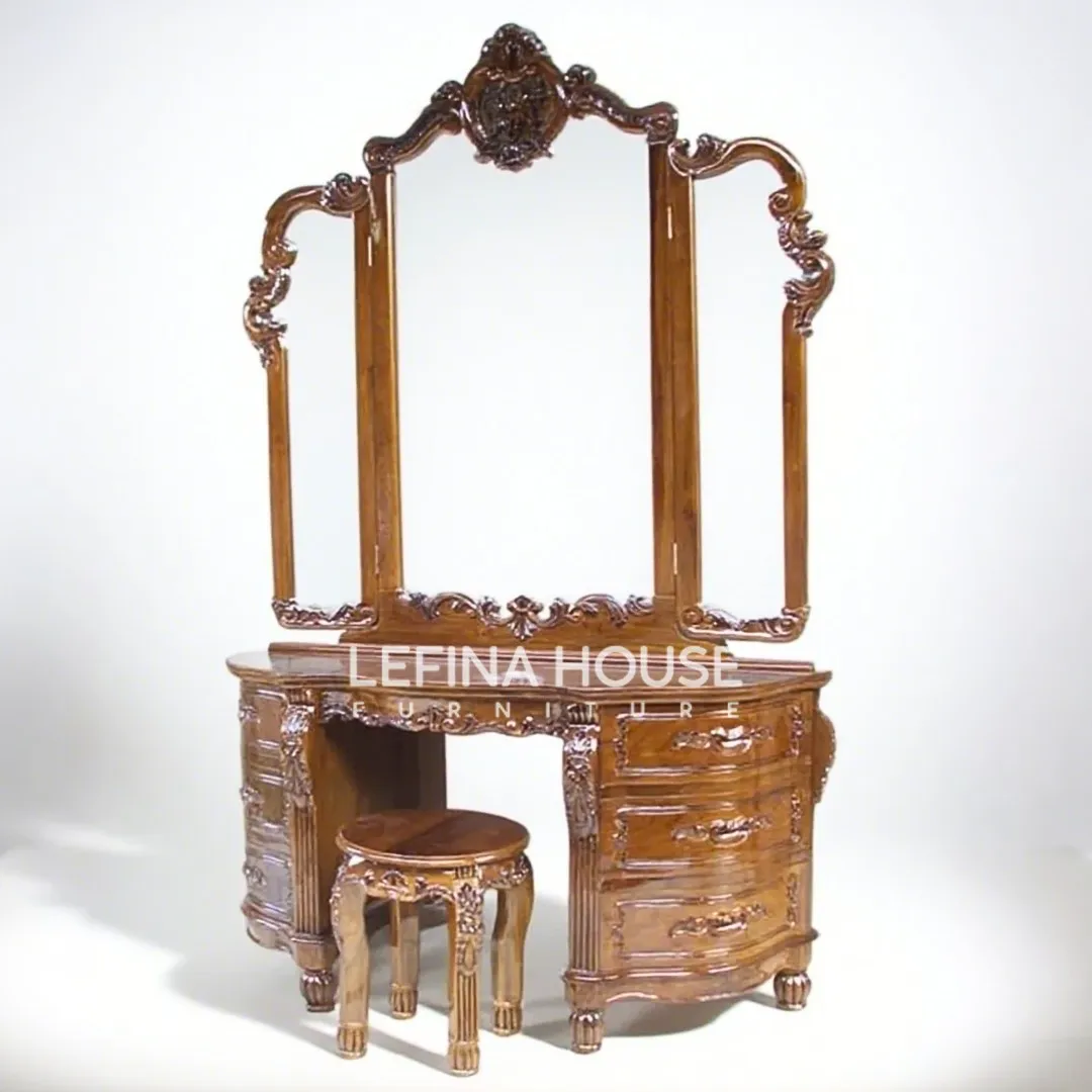 Meja Rias Kayu Jati Mewah: Sentuhan Klasik Elegan untuk Kamar Anda