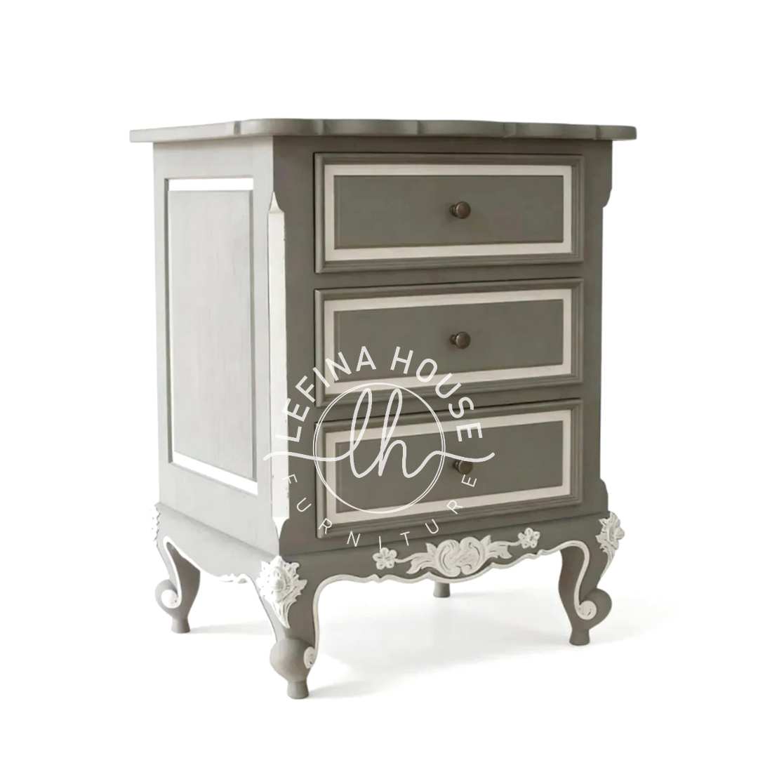 Berikan sentuhan warna yang unik dan berkelas pada kamar tidur Anda dengan nakas abu klasik elegan LMNK049 dari Lefina House. Perabot ini adalah jawaban bagi Anda yang mencintai keanggunan desain klasik namun menginginkan palet warna yang lebih modern dan tidak konvensional. Dengan tiga laci yang luas dan finishing warna abu-abu yang menenangkan, nakas ini memancarkan nuansa vintage yang telah diperbarui, menciptakan suasana yang mewah, tenang, dan sangat bergaya. Ini adalah cara sempurna untuk menunjukkan selera desain Anda yang unik.