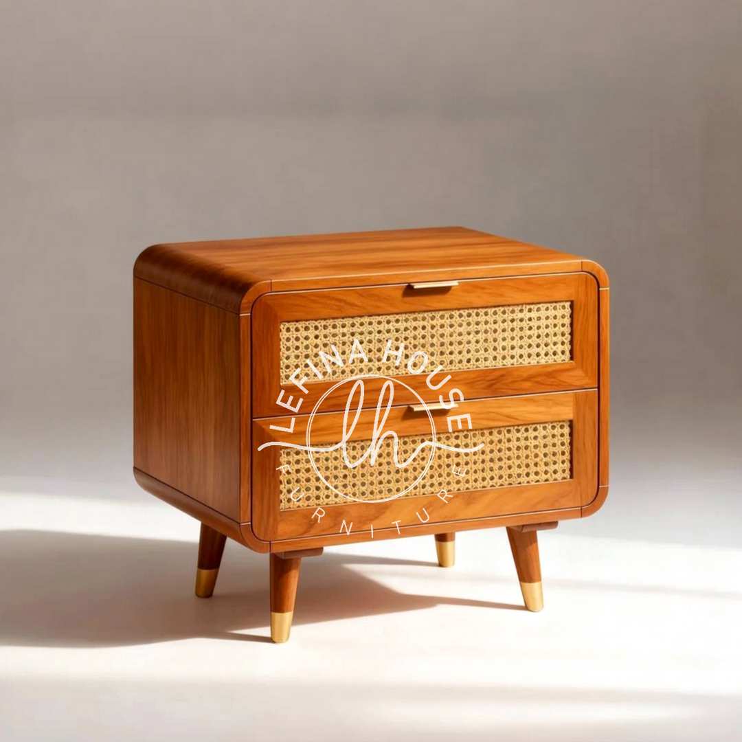 - Nama Produk: Nakas Jati Rotan Dua Laci Retro Minimalis