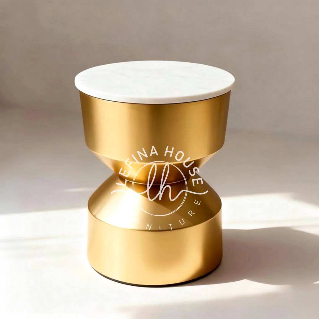 Hadirkan perpaduan kemewahan material paling premium ke dalam ruangan Anda dengan nakas kayu mahoni gold LMNK059 dari Lefina House. Perabot istimewa ini menampilkan siluet jam pasir (hourglass) yang artistik dan tak lekang oleh waktu, dengan badan yang dilapisi finishing emas berkilau dan dimahkotai oleh permukaan atas dari marmer putih asli. Ini adalah sebuah statement piece yang dirancang untuk mereka yang memiliki selera tertinggi, sebuah simbol kemewahan yang akan menjadi pusat perhatian di kamar tidur, ruang keluarga, atau lounge paling eksklusif.