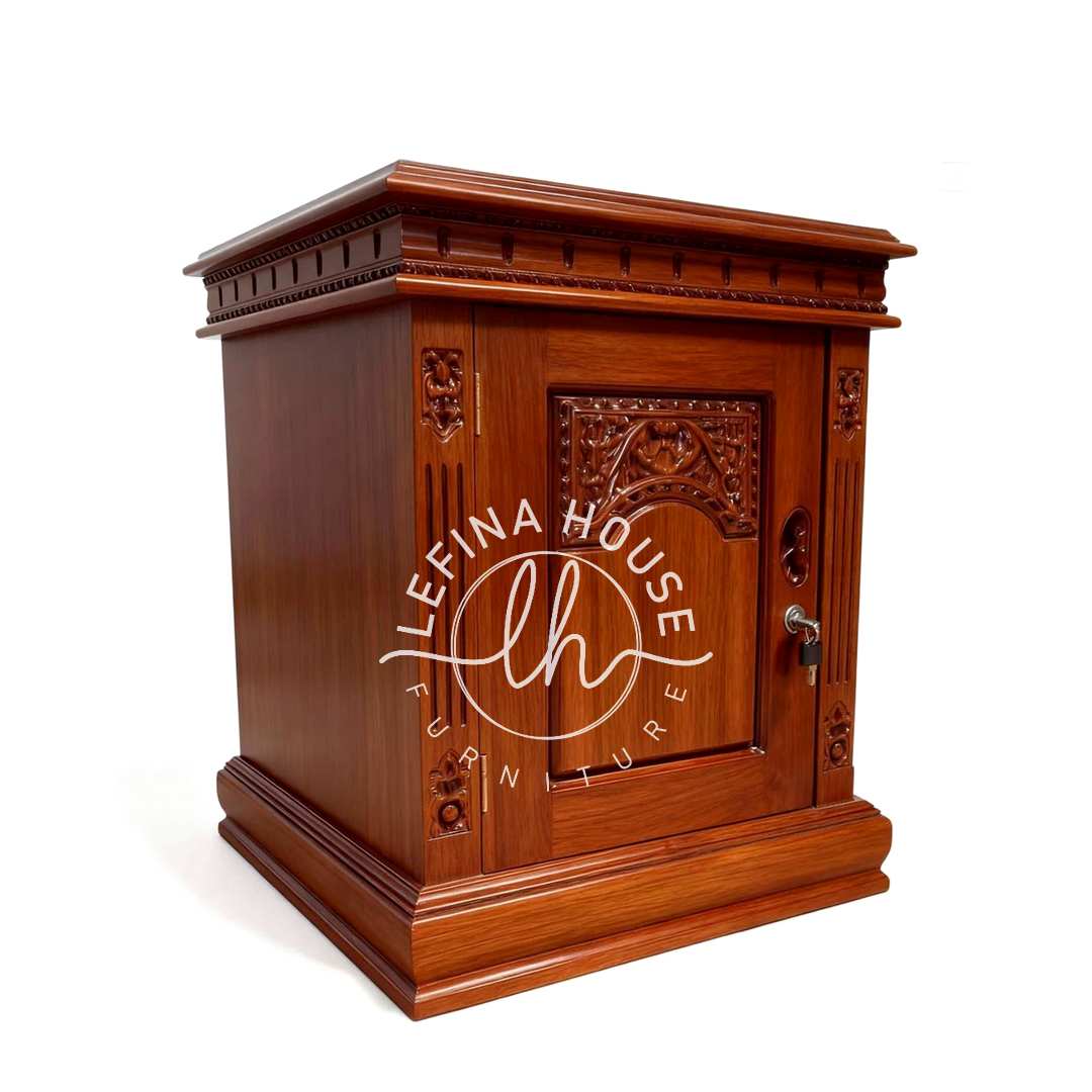 Lefina House adalah galeri seni mebel ukir Jepara Anda. Jika Anda ingin melengkapi ruangan dengan tema yang serasi, layanan custom furniture kami siap membantu. Miliki sebuah perabot yang menceritakan kisah keindahan alam. Pesan nakas jati ukir mewah ini sekarang!