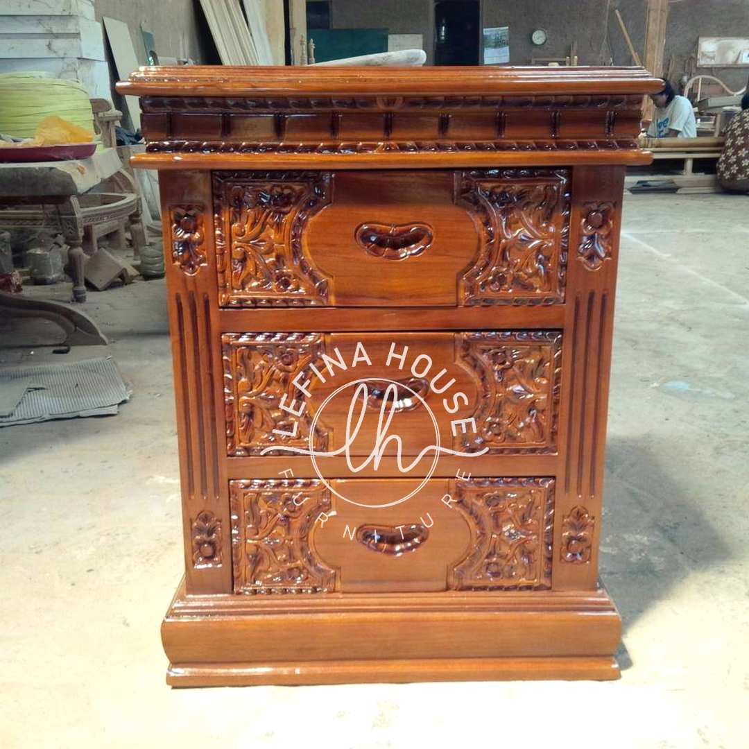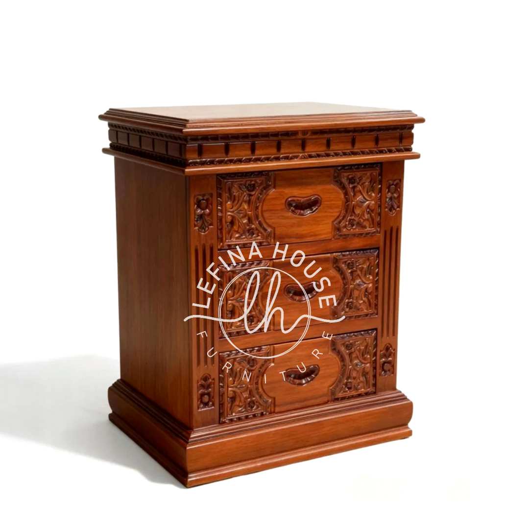 Lefina House adalah toko furniture Anda untuk menemukan mebel jati ukir dengan kualitas otentik. Jika Anda menginginkan set kamar yang serasi, layanan custom furniture kami siap membantu mewujudkan impian Anda. Jangan lewatkan kesempatan untuk memiliki perabot yang memancarkan kemewahan sejati. Pesan nakas ukir jati Jepara mewah ini sekarang!