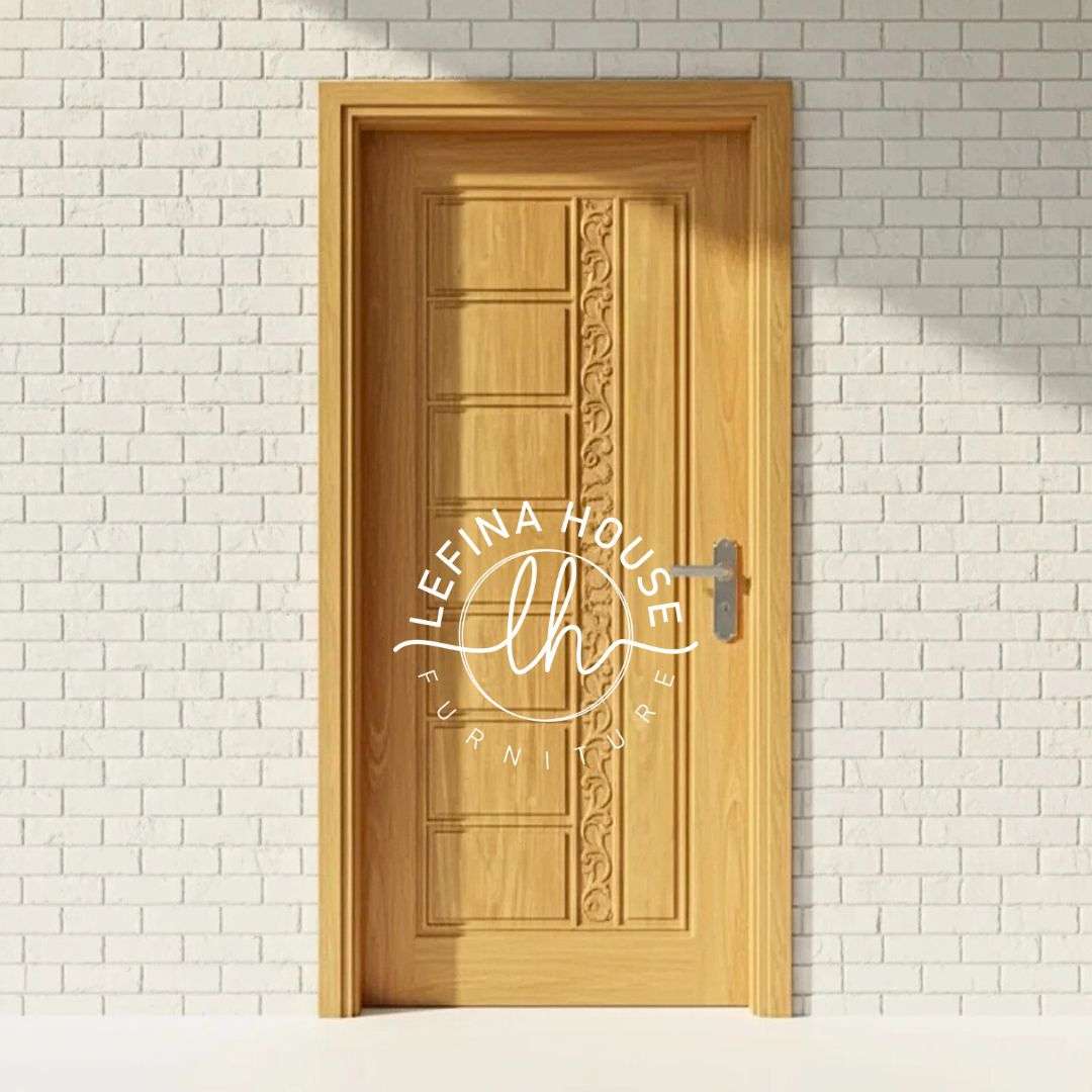Diproduksi oleh Lefina House, pusat mebel jati berkualitas, pintu ini menggunakan bahan baku kayu jati yang telah dikeringkan (Kiln Dry) secara sempurna. Desain panel ramping memberikan ilusi pintu yang lebih tinggi (verticality), membuat ruangan terasa lebih lega. Sementara itu, aksen ukiran halus yang disematkan memberikan nilai tambah estetika, menjadikannya jembatan sempurna antara gaya interior minimalis dan klasik. Produk ini sangat ideal untuk apartemen, rumah tipe minimalis, atau ruang kantor yang ingin tampil elegan.