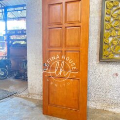 Desain panelnya dibuat minimalis dengan garis-garis tegas atau kotak-kotak simetris yang modern. Tanpa ukiran yang berlebihan, pintu ini justru terlihat lebih elegan dan mewah, sangat pas untuk rumah bergaya kontemporer, industrial, maupun tropis modern. Lihat juga koleksi kusen pintu jati kami untuk paket lengkap.