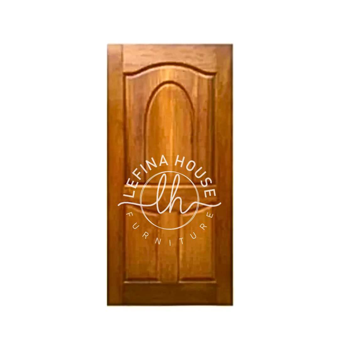 Jika Anda merasa pintu kotak terlalu kaku, maka Pintu Jati Klasik model panel lengkung ini adalah alternatif terbaik. Ia membawa keseimbangan dan harmoni visual ke dalam ruangan. Lefina House siap melayani pembuatan pintu custom dengan ukuran dan warna finishing sesuai keinginan Anda, memastikan pintu pas sempurna dengan kusen rumah Anda.