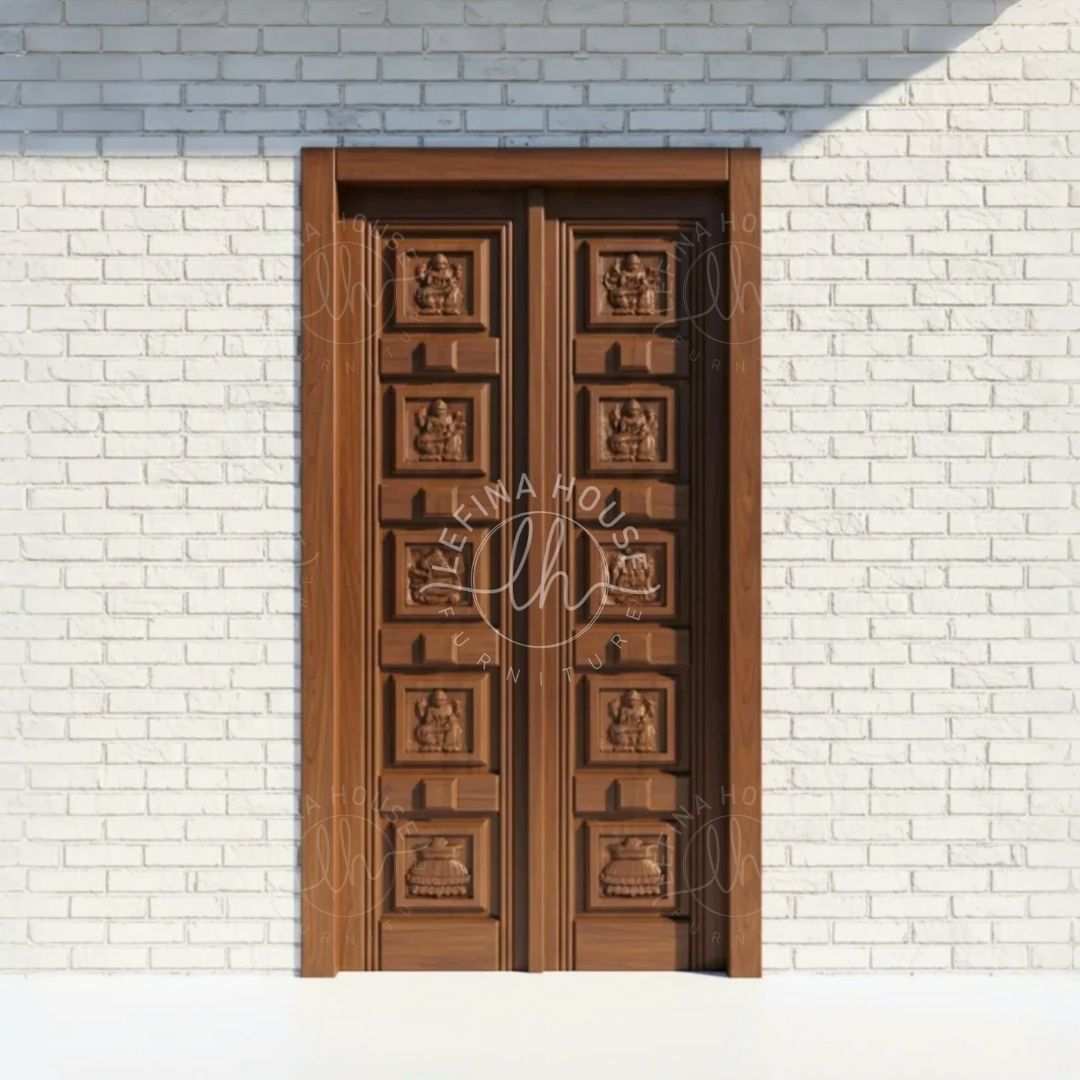 Lefina House mempersembahkan pintu kayu jati geometris yang menonjolkan garis simetris dan bentuk modern kontemporer. Terbuat dari kayu jati solid pilihan, produk ini menawarkan keindahan visual sekaligus kekuatan material terbaik dari Jepara.