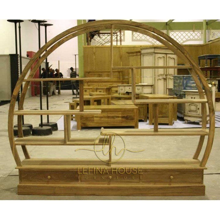 rak buku parabola ini terbuat dari bahan baku kayu solid pilihan seperti mahoni dan jati yang semuanya juga tau bagaimana kualitas bahan tersebut jika digunakan untuk produksi mebel. Meski kami berfokus memproduksi furniture dengan bahan jati dan mahoni,tidak menutup kemungkinan lefina house akan membuatkannya untuk anda yang menginginkannya menggunakan bahan baku lainnya.