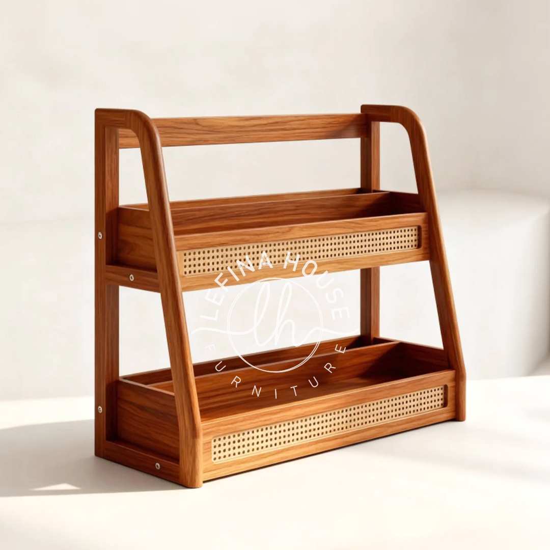 Di Lefina House, kami mengombinasikan rotan dengan mebel jati untuk memastikan durabilitas. Anda juga bisa melihat inspirasi penataan rak ini di halaman tips menata ruang keluarga agar terlihat lebih harmonis.