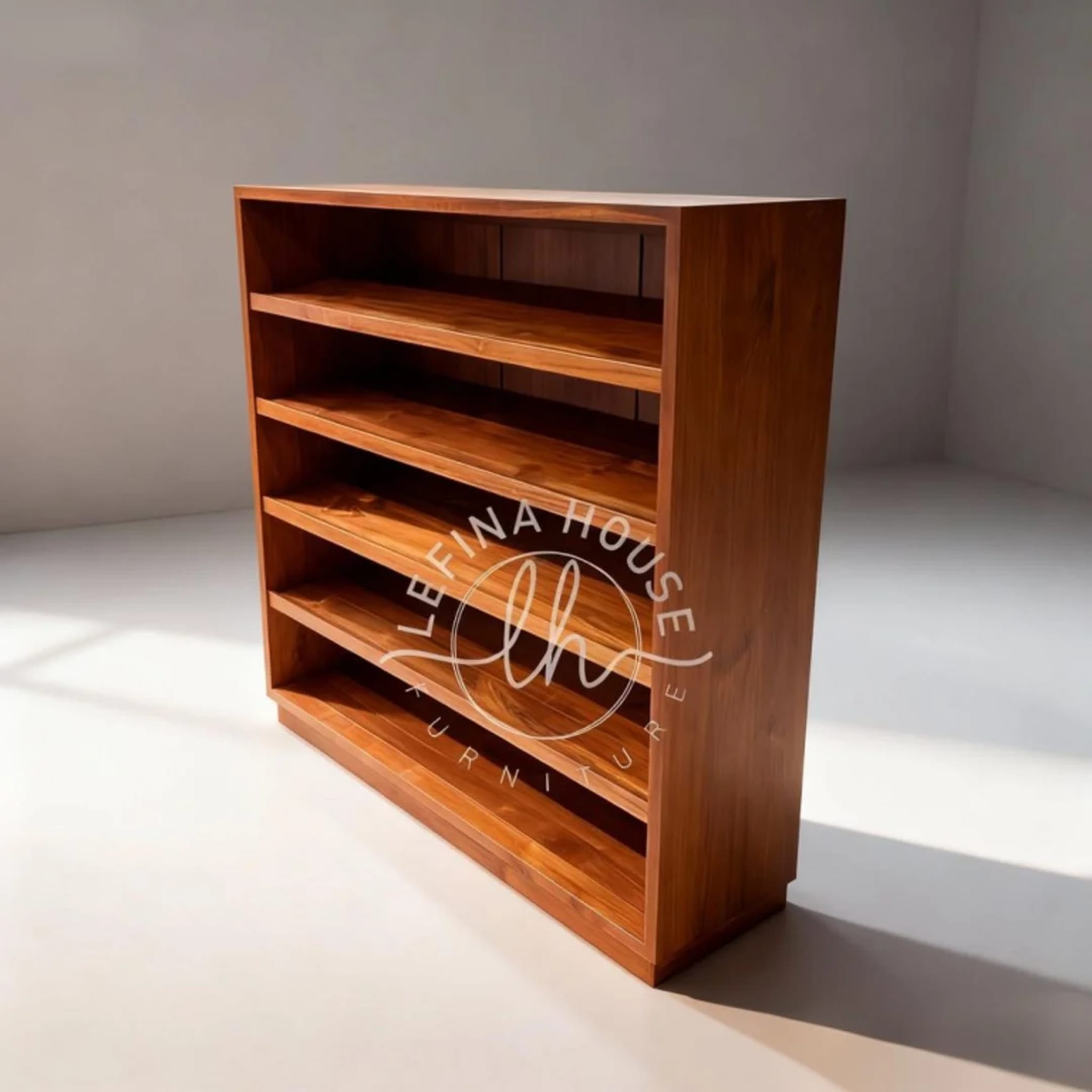 Berbeda dengan rak plastik atau besi tipis, rak sepatu kayu jati ini menawarkan stabilitas maksimal. Anda tidak perlu khawatir rak akan roboh saat menyimpan sepatu boots berat atau sepatu olahraga ukuran besar. Desainnya yang terbuka (open shelf) memastikan sirkulasi udara yang baik, mencegah bau tidak sedap dan jamur pada koleksi sepatu kesayangan Anda. Produk ini wajib dimiliki oleh setiap keluarga yang mengutamakan kebersihan dan kerapian di toko furniture terpercaya.