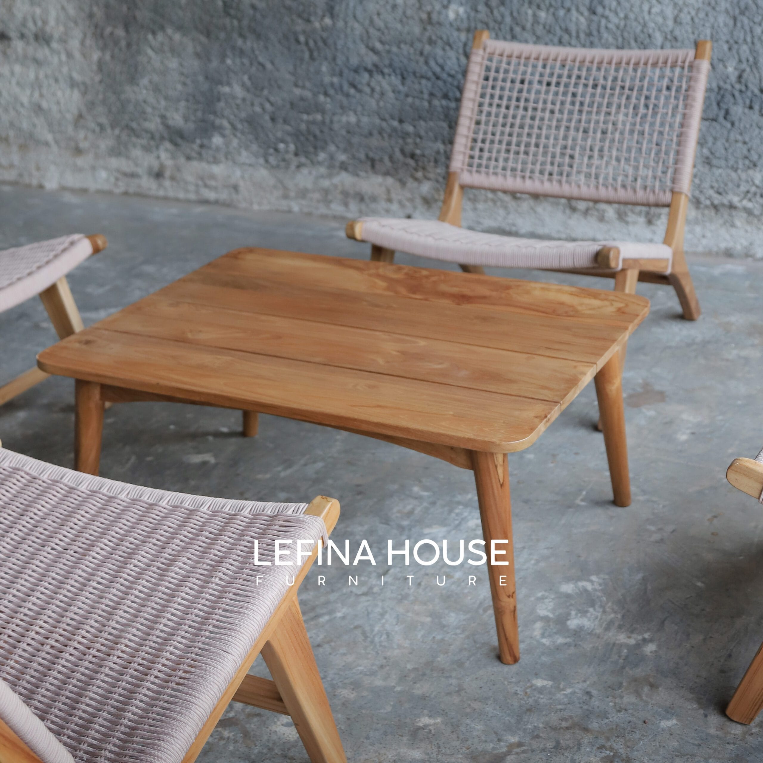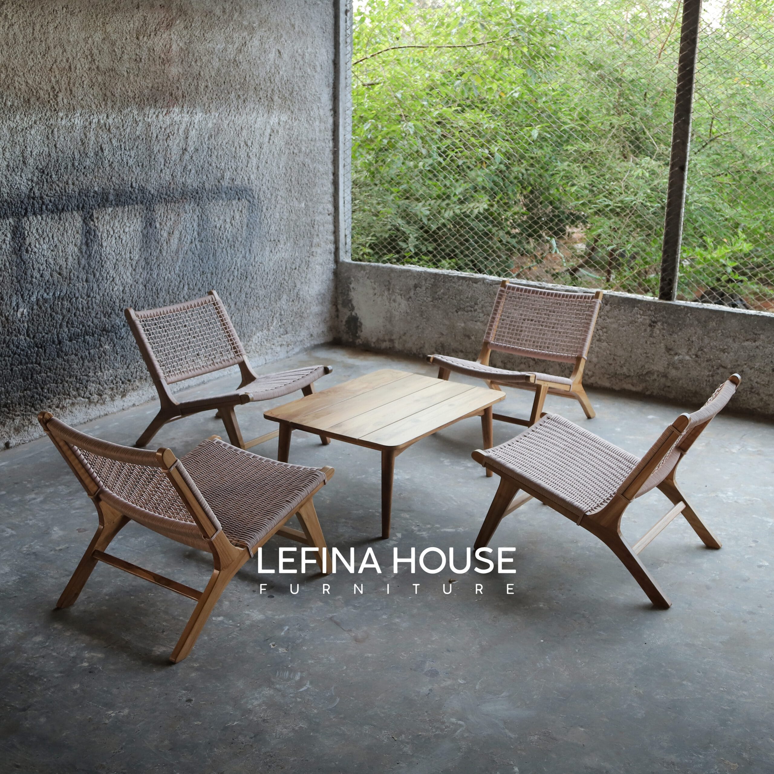 - Mudah Dipadukan dengan Produk Lain: Set Kursi Santai Oksana dapat dipadukan dengan produk Lefina House lainnya, seperti Kursi Santai Rotan Jati Oksana dan Meja Kopi Oksana Japandi, untuk menciptakan tampilan ruang yang serasi dan harmonis. Dengan material kayu jati dan rotan yang sama, produk-produk ini akan memberikan kesan elegan dan alami pada ruangan Anda.
