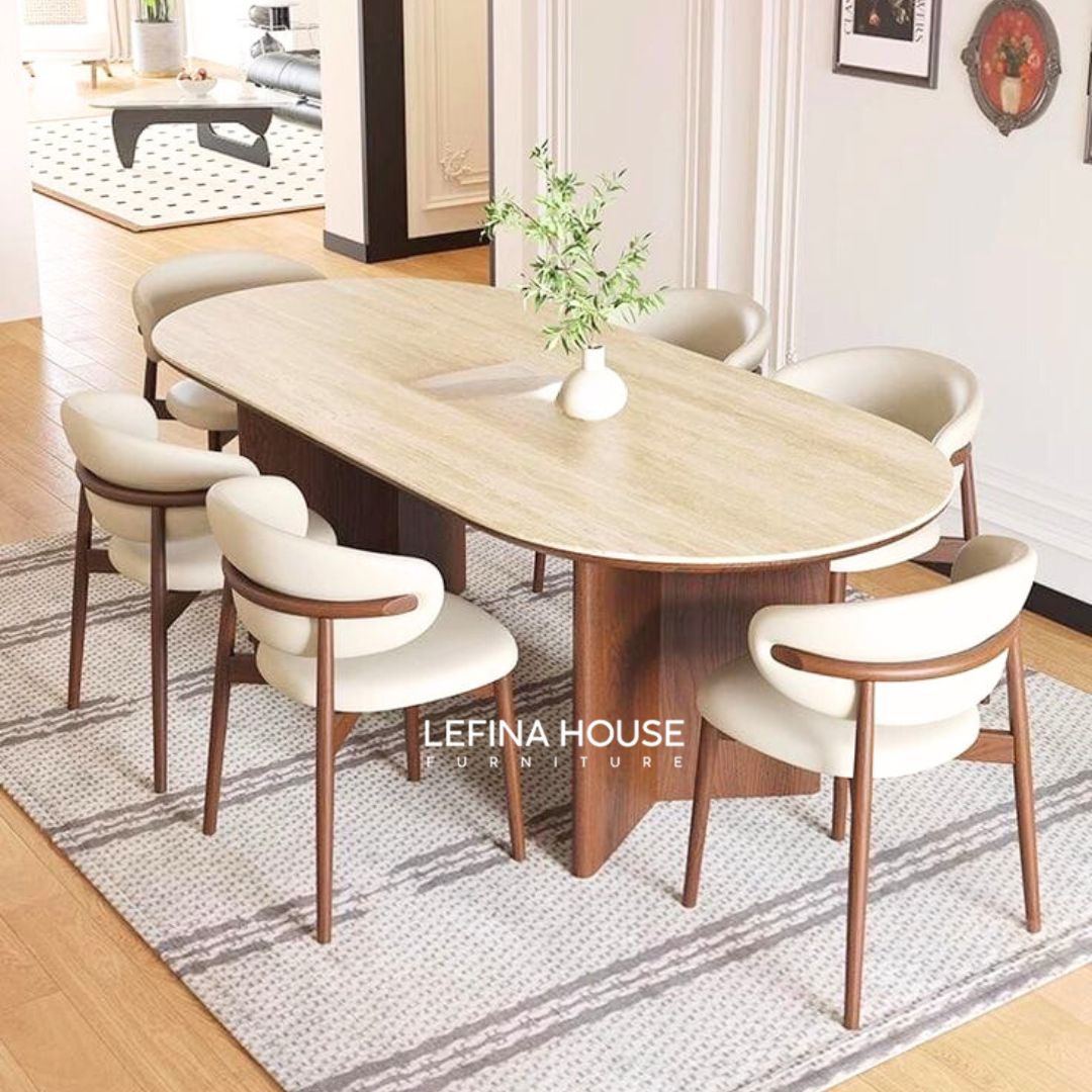 Set Meja Makan Oval Top Marmer 6 Kursi Modern Mewah Lefina House