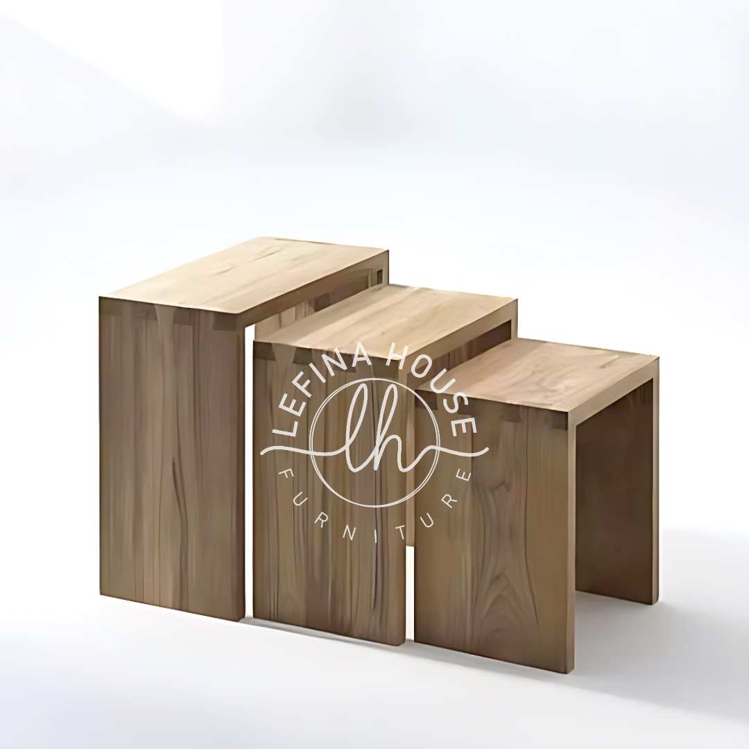 Maksimalkan ruang Anda tanpa mengorbankan gaya dengan Set Meja Samping Sarang 3-in-1 Kayu Jati. Ini adalah solusi furniture minimalis yang jenius, dirancang khusus untuk kehidupan modern yang dinamis. Meja samping sarang jati (nesting tables) ini terdiri dari tiga meja kecil dengan ukuran berbeda yang dapat disimpan menjadi satu kesatuan, sangat hemat ruang!