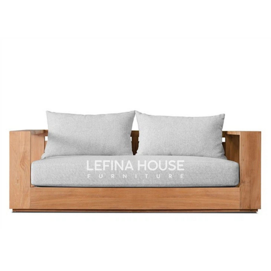 Sofa Tamu Minimalis 2 Seater dari Lefina House menggabungkan kekuatan kayu jati dengan desain sederhana yang timeless. Ukuran 150x91x88 cm membuatnya pas untuk ruang dengan ukuran sedang hingga besar.