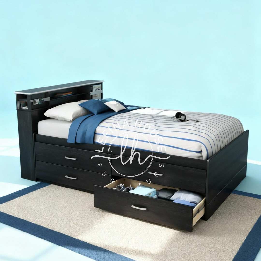 Jangan takut dengan warna gelap. Tempat Tidur Anak Hitam Sorong Multifungsi memberikan karakter kuat pada ruangan. **Pesan sekarang di Lefina House!**