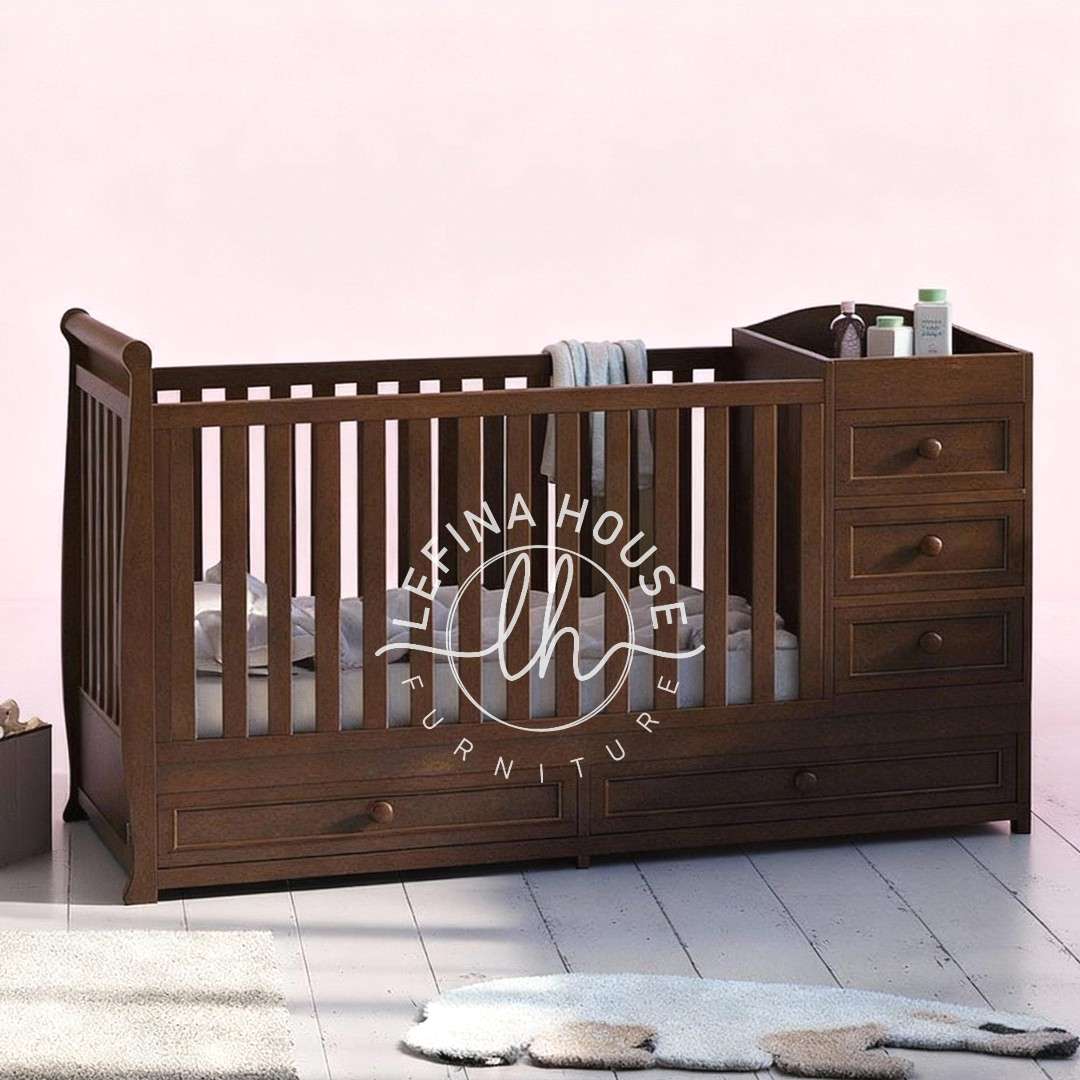 - Fitur Unggulan: Laci penyimpanan bawah yang luas, unit ganti popok yang dapat dilepas, konstruksi kayu jati solid yang kokoh.