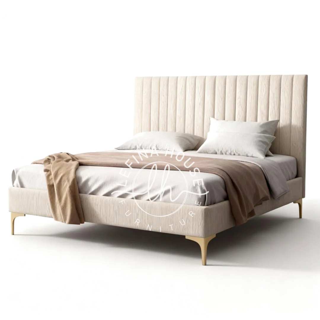 Keanggunan yang ‘Cozy’: Tempat Tidur Headboard Garis Linen Beige