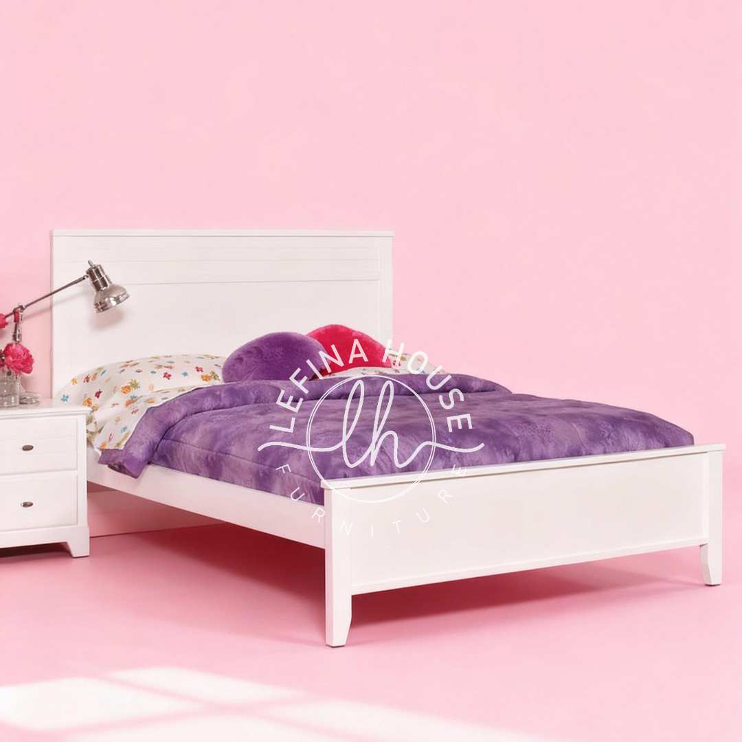 Manfaatkan ketinggian ruangan untuk kenyamanan maksimal. Tempat Tidur Minimalis Putih Headboard Ramping adalah solusi cerdas untuk kamar anak yang rapi dan fungsional. **Pesan sekarang di Lefina House!**